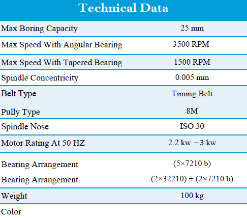 ➤ Conventional machining spindle units use six-series bearings or roller bearings, which causes the spindle to be inaccurate enough. Meanwhile, in the manufacture of the company's spindles, precision bearing of grade P2 or P4 of seven series has been used, this has increased the rotational accuracy to 0.002 to 0.005 mm. Using this series of bearings requires sufficient knowledge in how to use and arrange the bearings and also calculate the preloading forces of the bearings in order to make the spindle stiff while working.