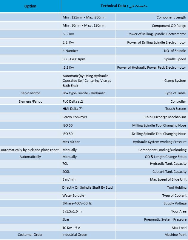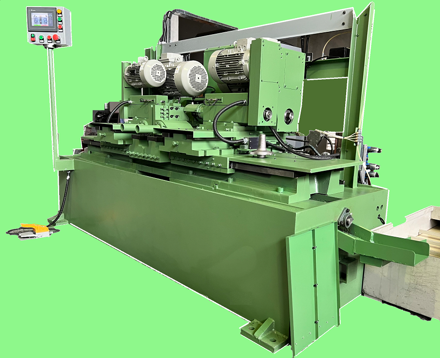 This machine holds the piece at both ends by using two hydraulic clamps (self-centering) and Two directions of the part are machined easily with high precision at the same time. The total cycle time is usually less than 30 seconds.s